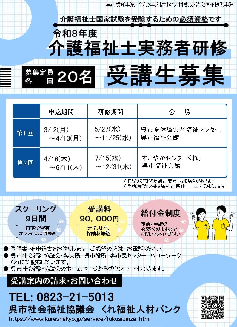 「令和6年度 <夏季>くれ福祉の職場説明会」の開催が令和6年8月3日(土)に決定しました。